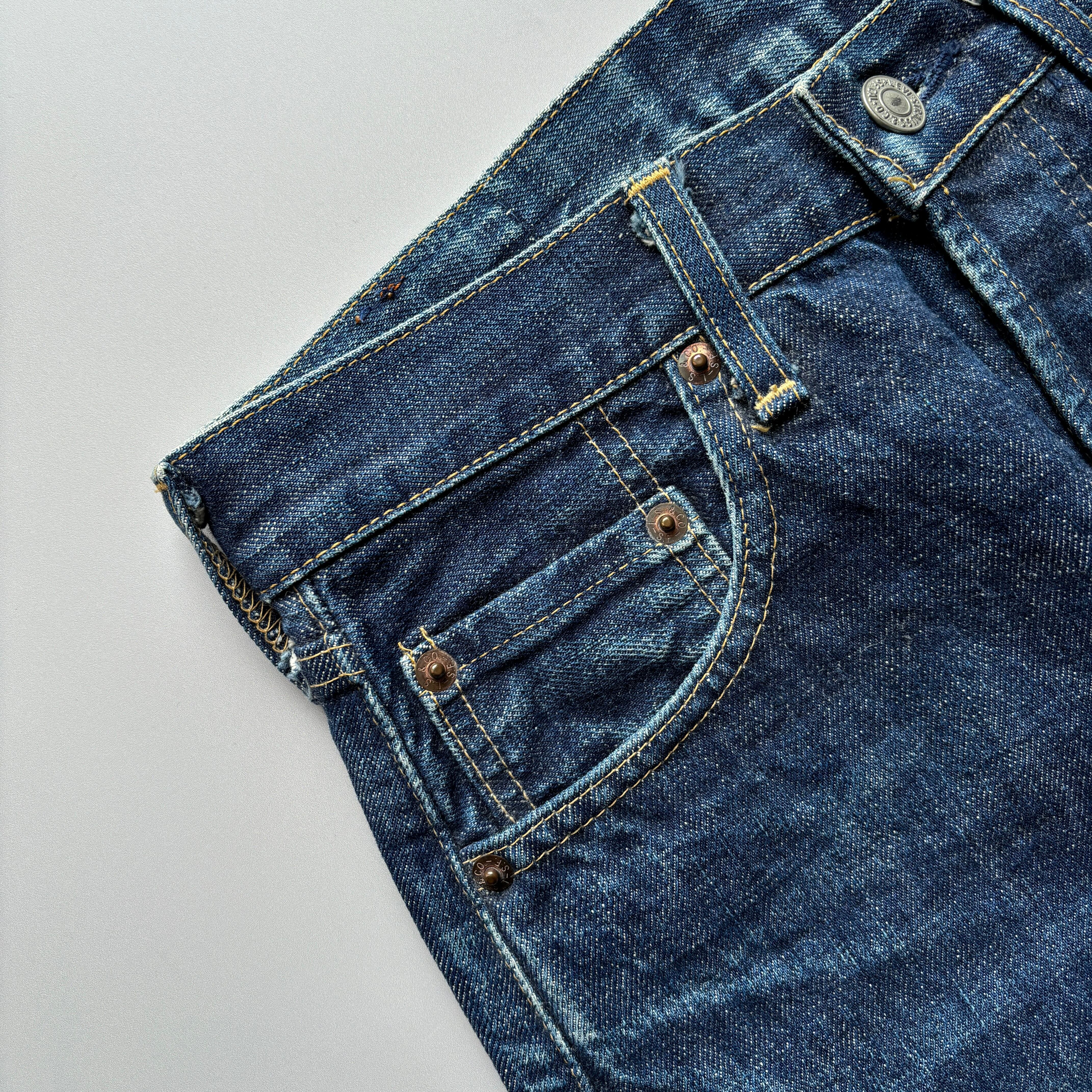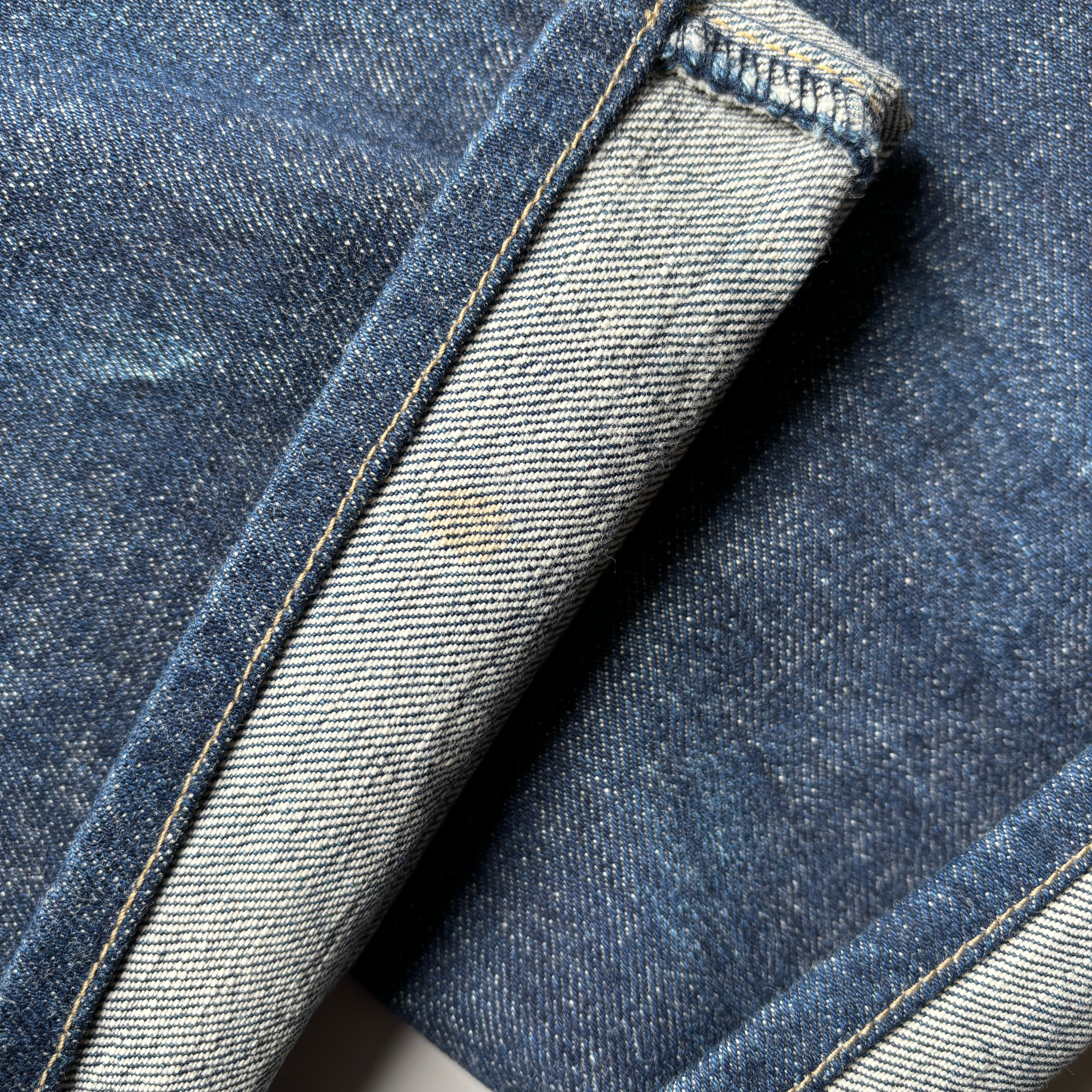 色も濃いめに残っていますし、色落ちの風合いもよく、アタリやダメージも良い味として仕上がった一品。