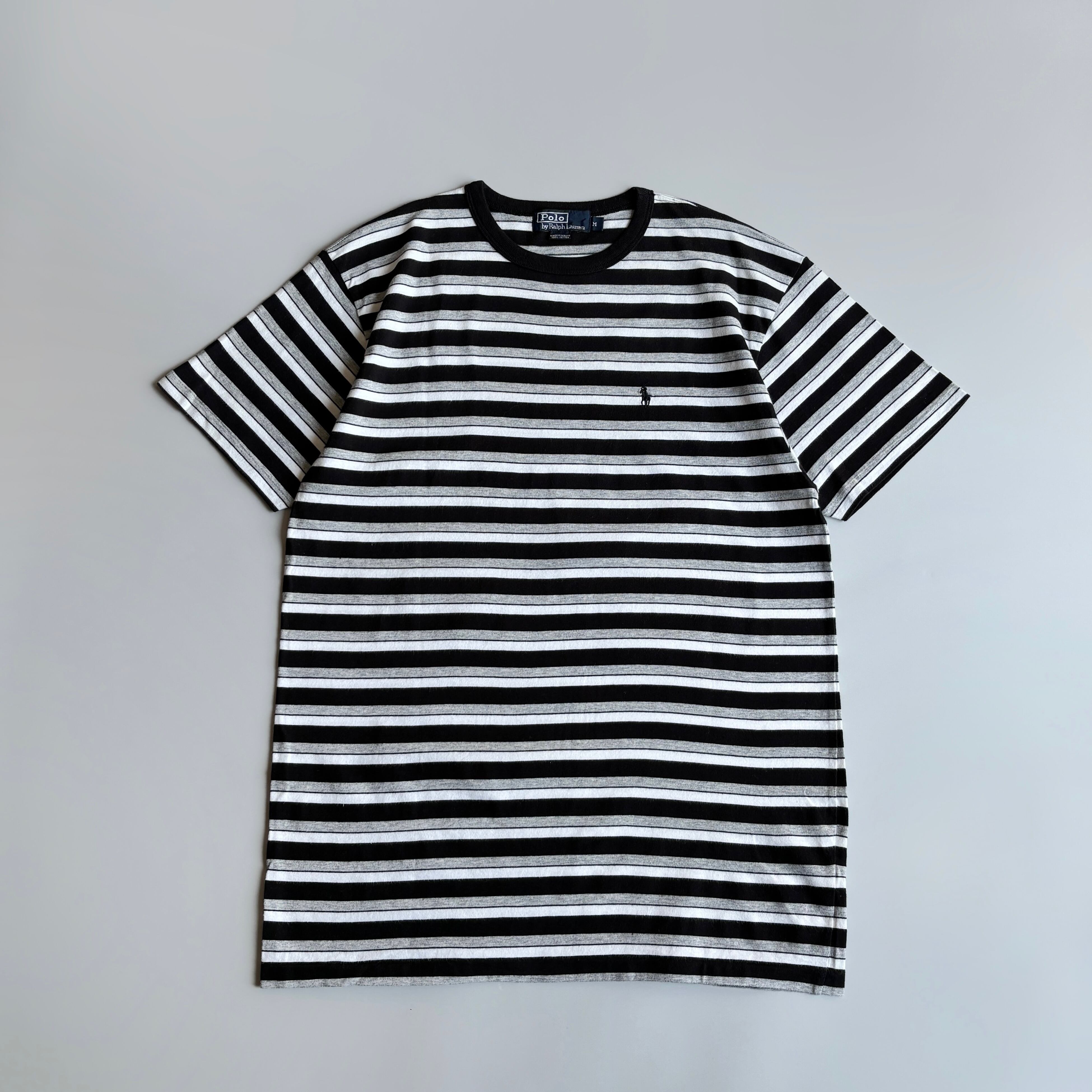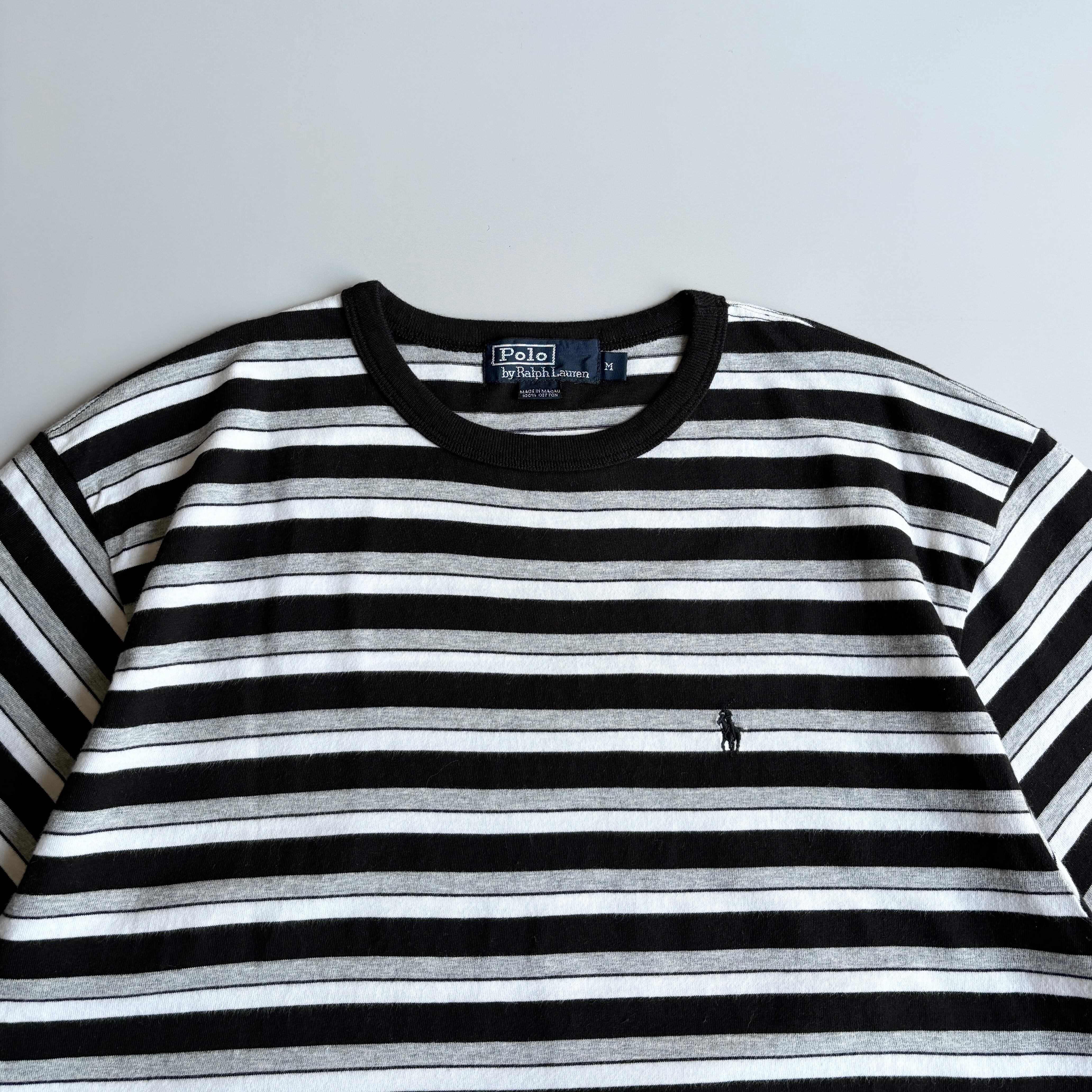 90s Ralph Lauren ラルフローレン モノトーン調 ボーダー バインダーネック Tシャツ