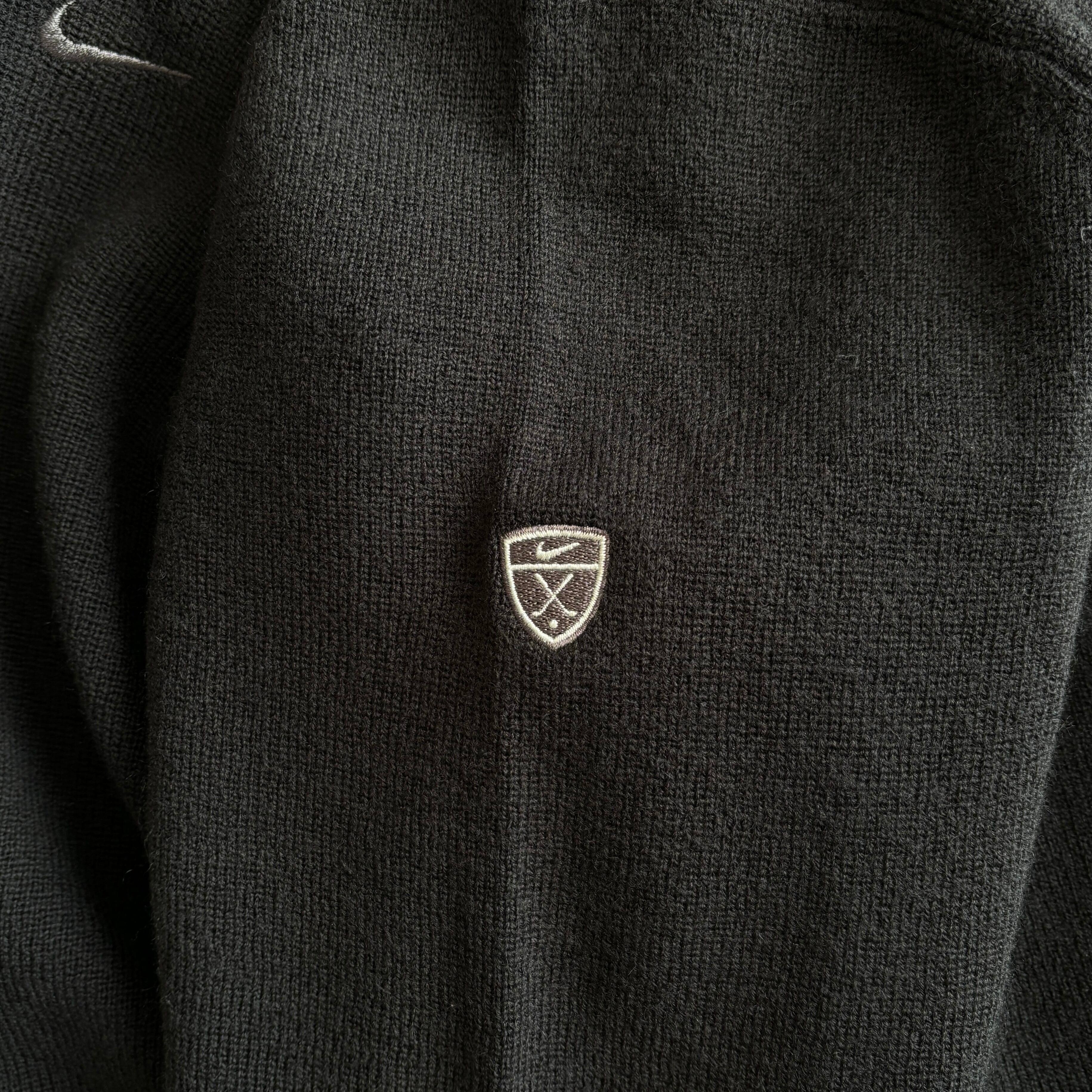 00s NIKE ナイキ ワンポイント スウォッシュロゴ刺繍 ハーフジップ ウールニット セーター ブラック