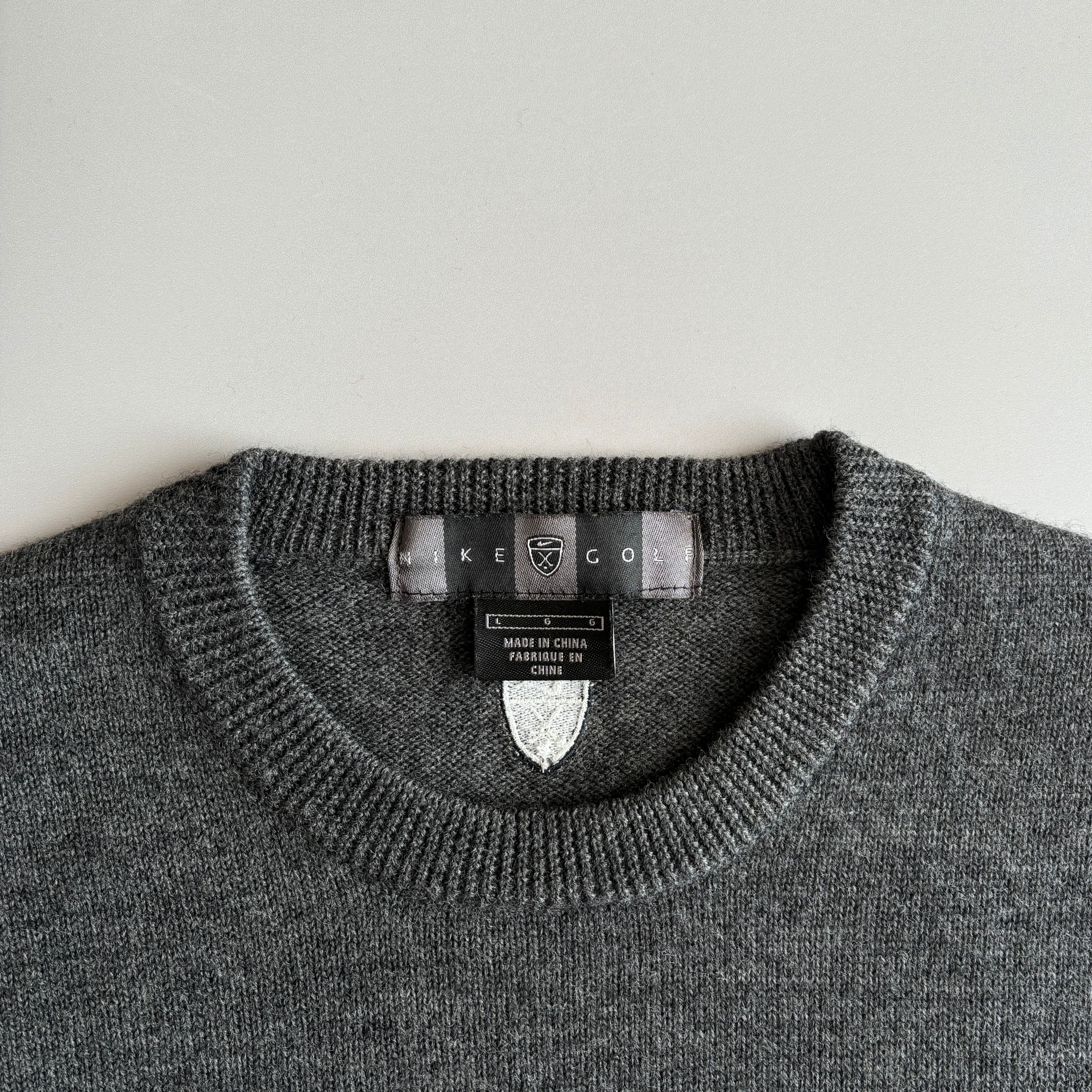 00s NIKE ナイキ ワンポイント スウォッシュロゴ刺繍 ウールニット クルーネック セーター ダークグレー