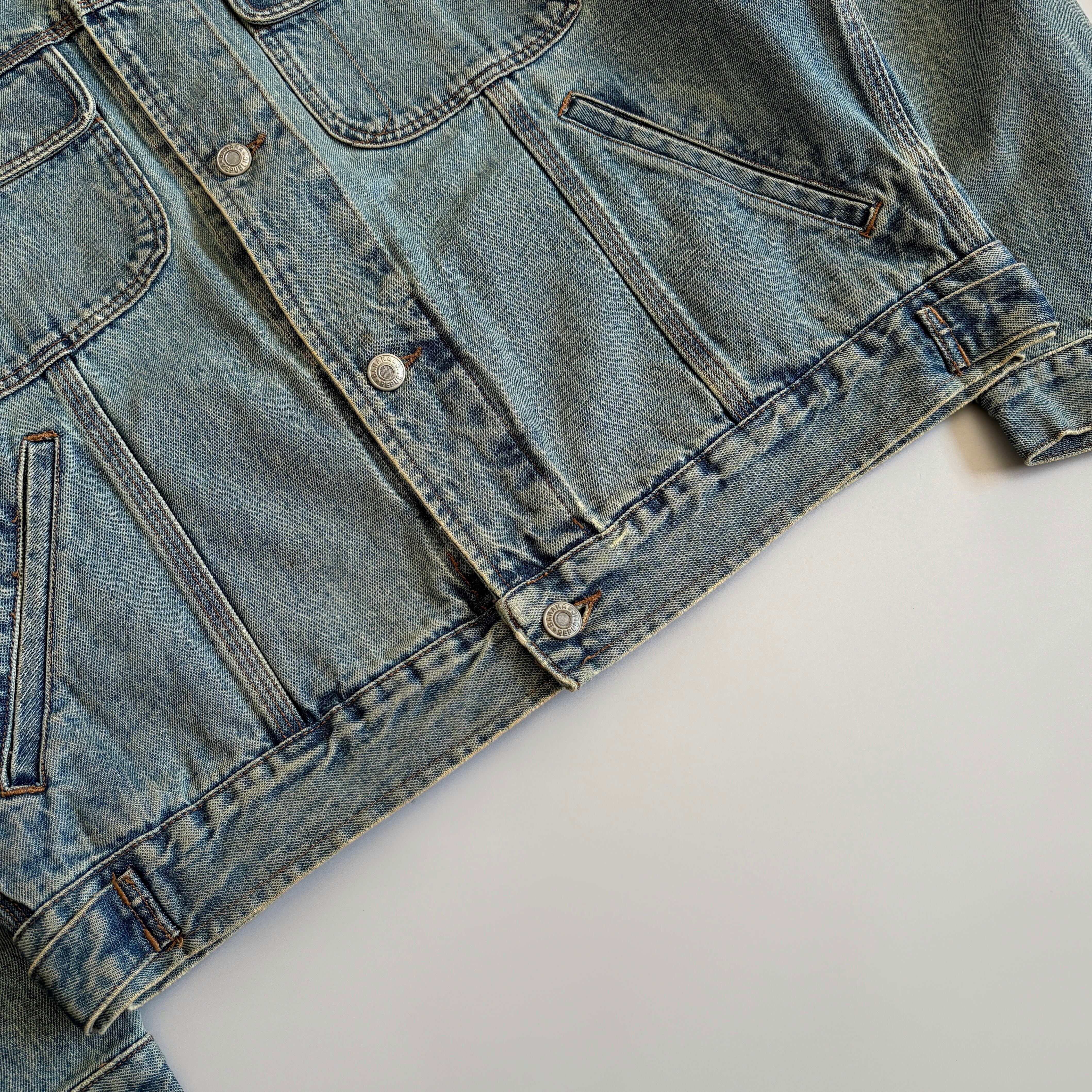 どこまでがオリジナルでどこまでが加工かは判りかねますが、デニム特有の多少のアタリやスレ、色褪せがございます。比較的良い状態の古着です☺︎