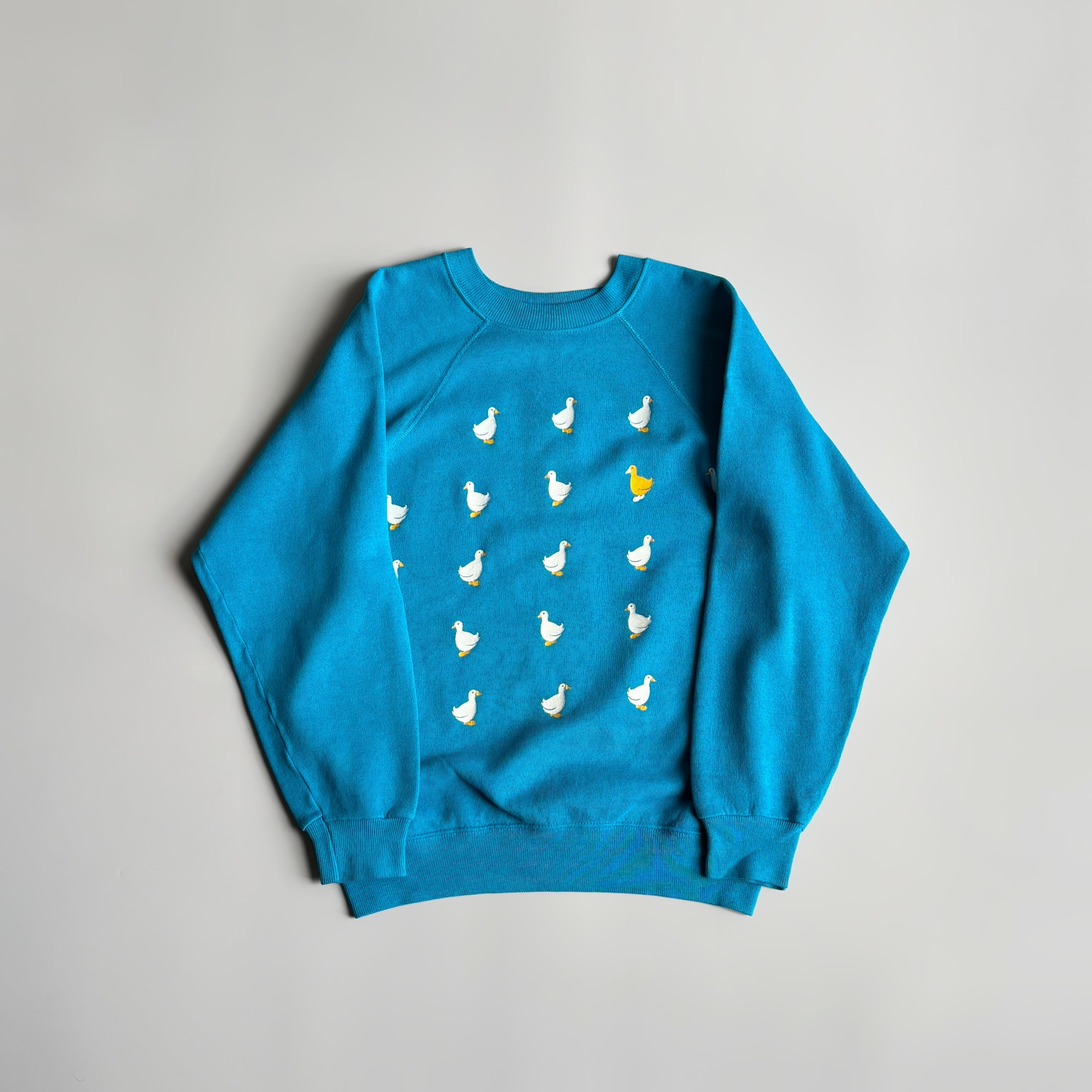 80s~ USA製 アヒル達なプリント 色違いアヒル 金アヒル!? ラグランスリーブ スウェット トレーナー