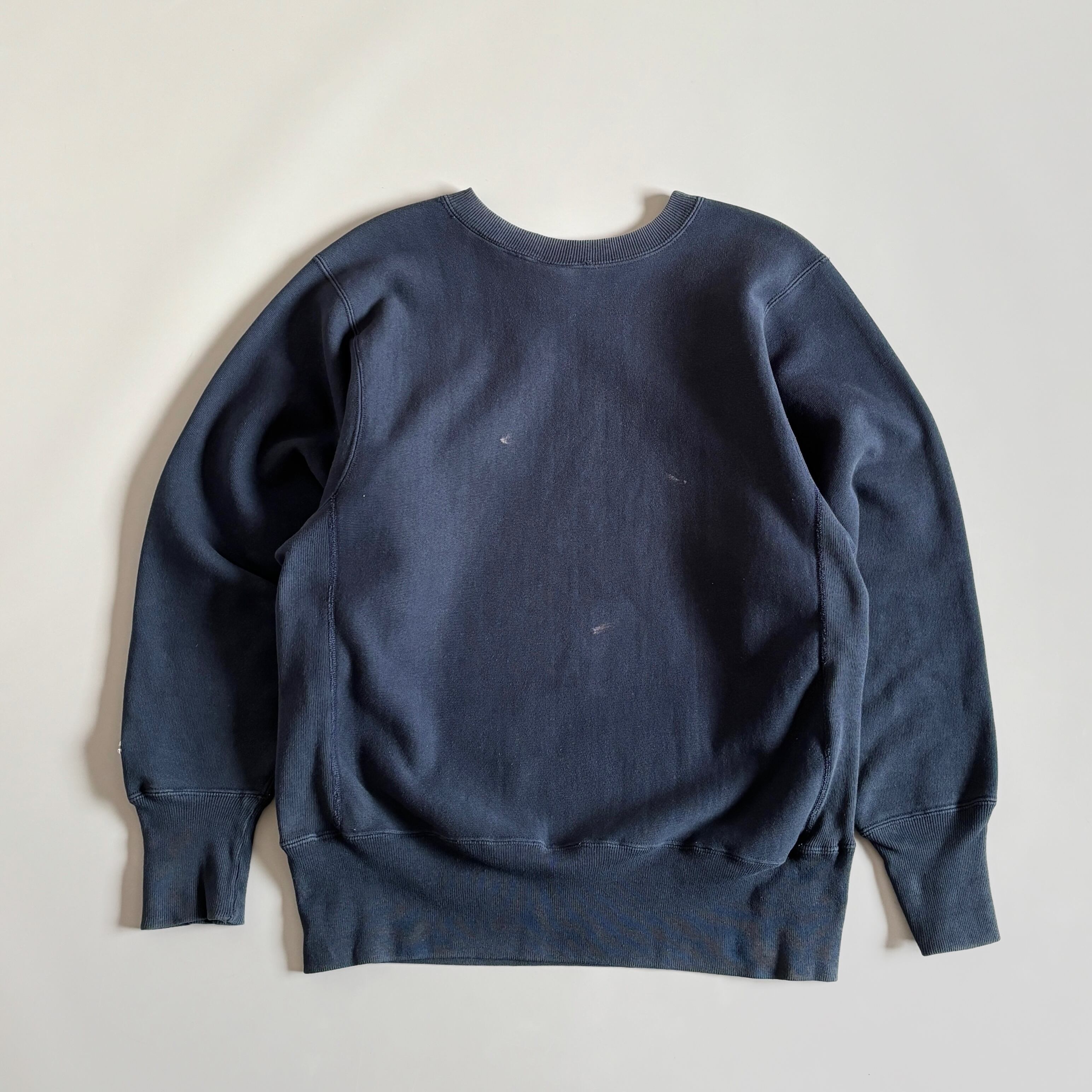 90s USA製素材 Champion REVERSE WEAVE チャンピオン リバースウィーブ 目付き ワンポイントロゴ刺繍 クルーネック スウェット トレーナー ネイビー