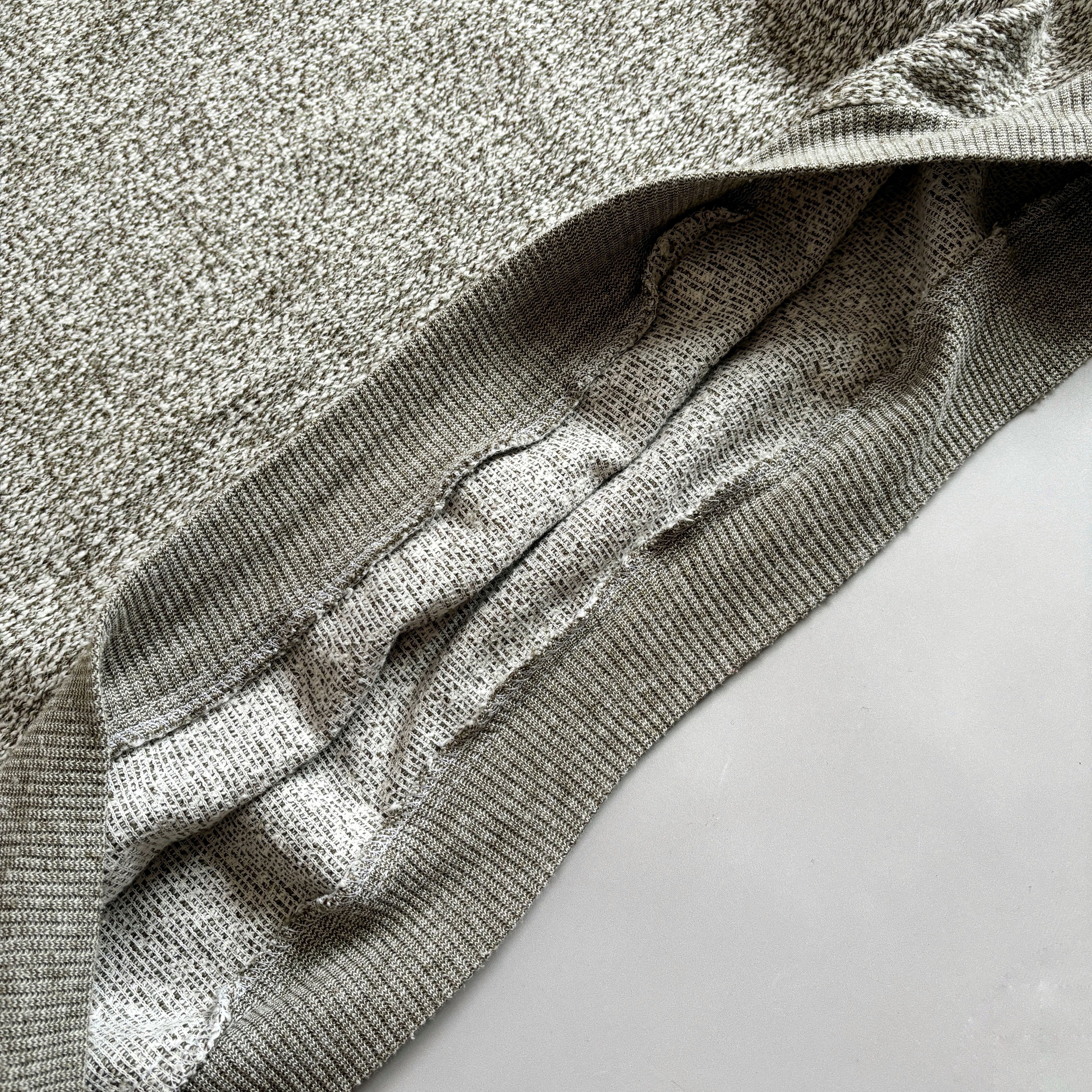スウェットの裏地側に用いられるような素材感が表地に施されたスウェットトレーナー。