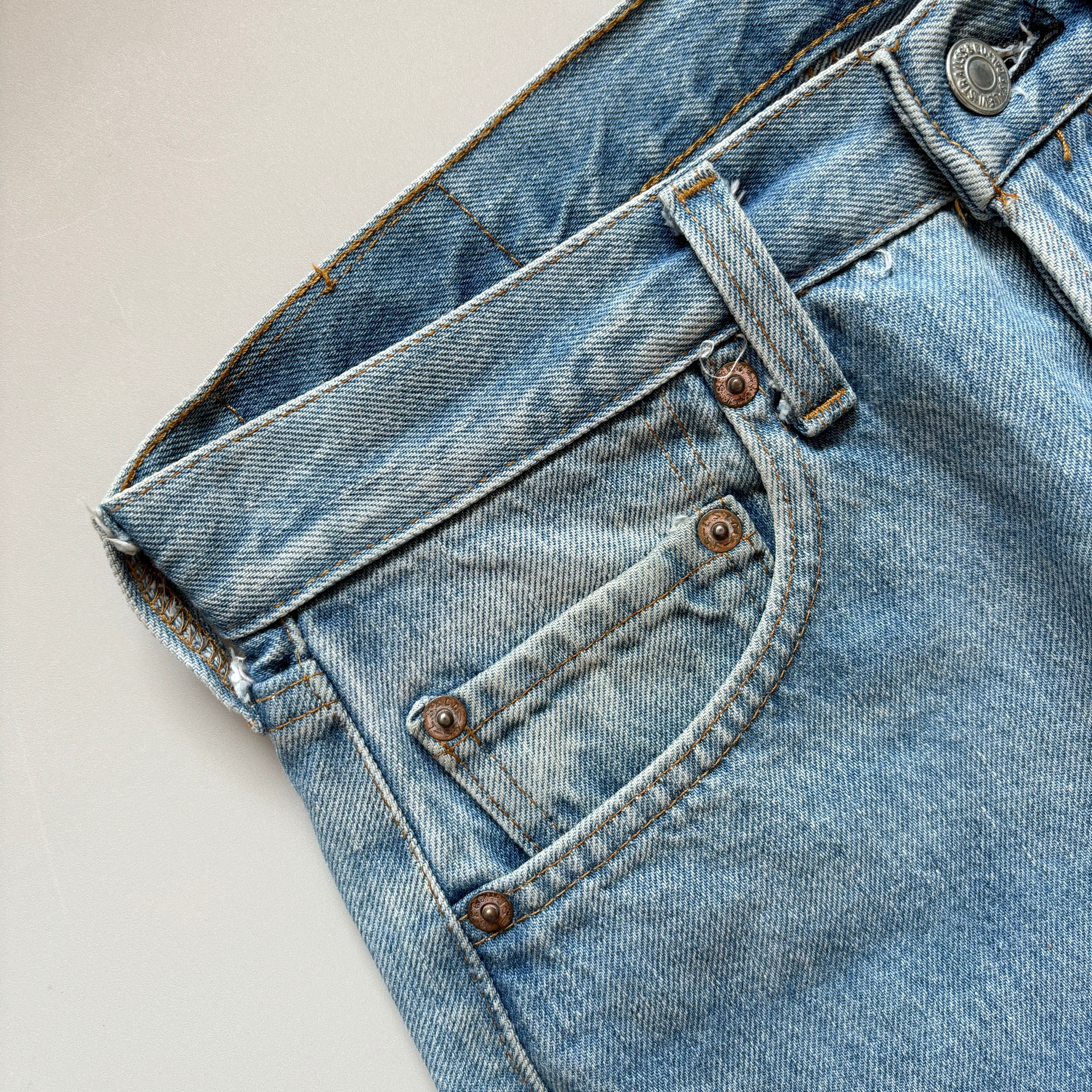 80s USA製 Levi's 501 デニムパンツ ハチマル 黒カン 赤耳 524エルパソ工場 アイスブルー 内股シングル