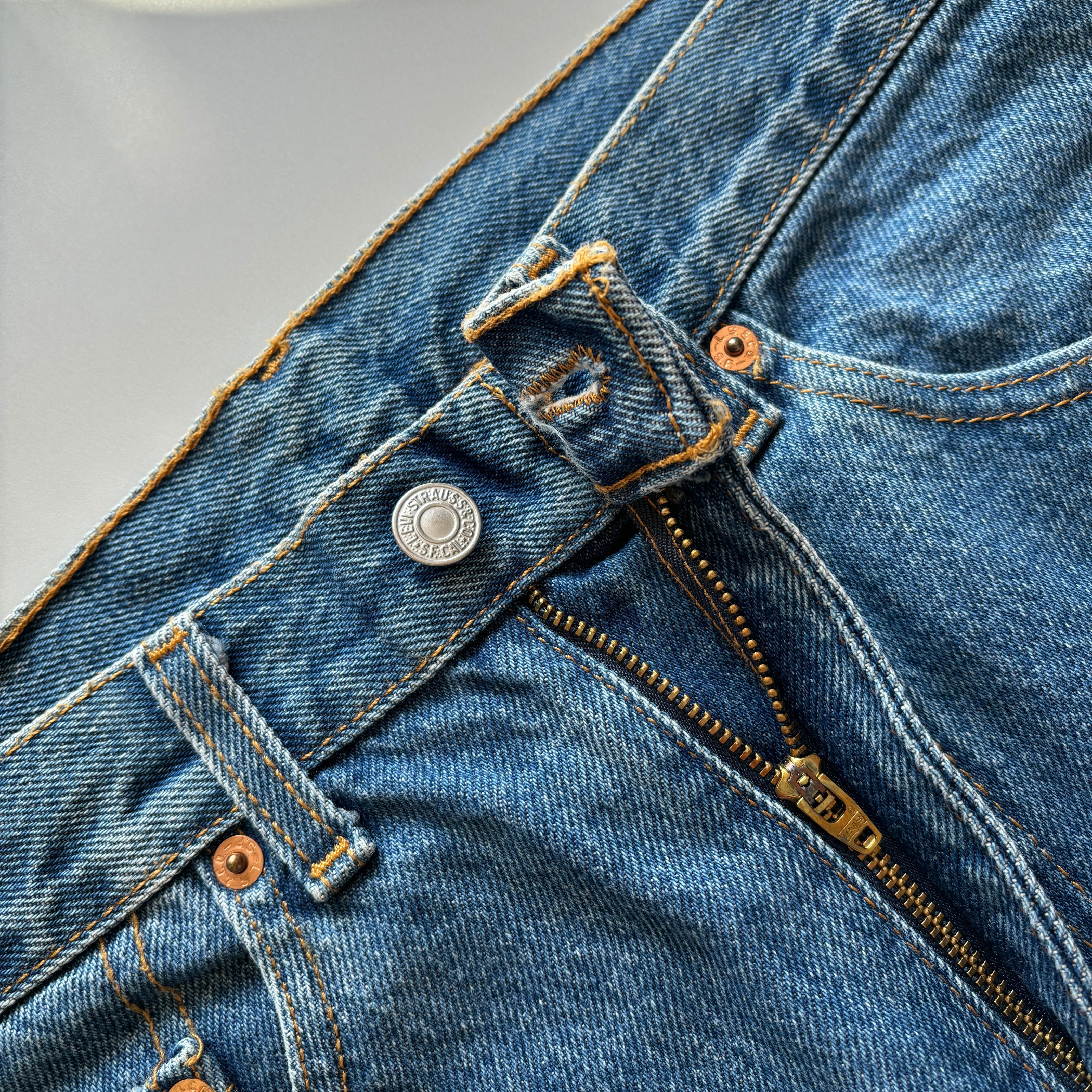 良い色合いでしっかりと色の残った明るいブルーデニム。