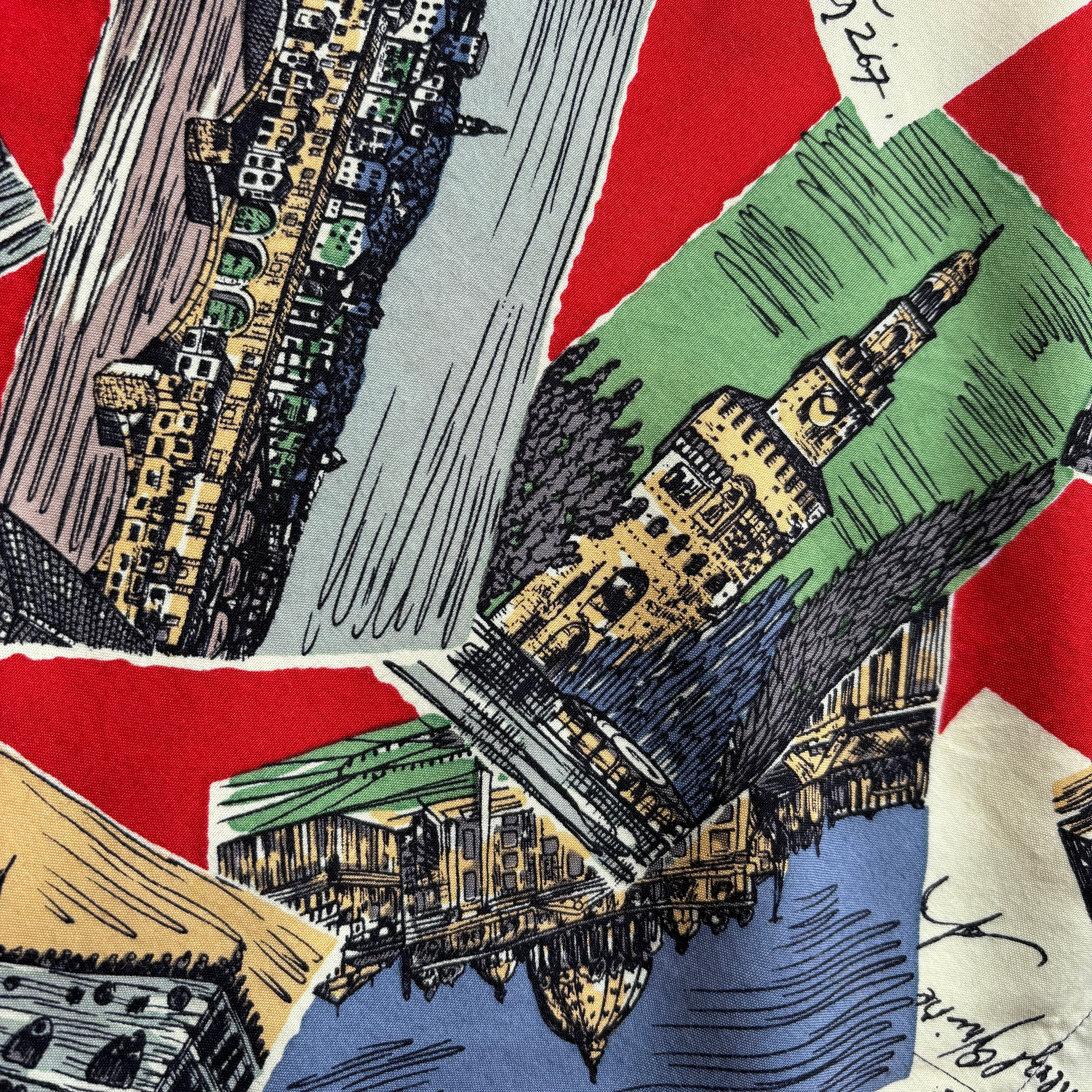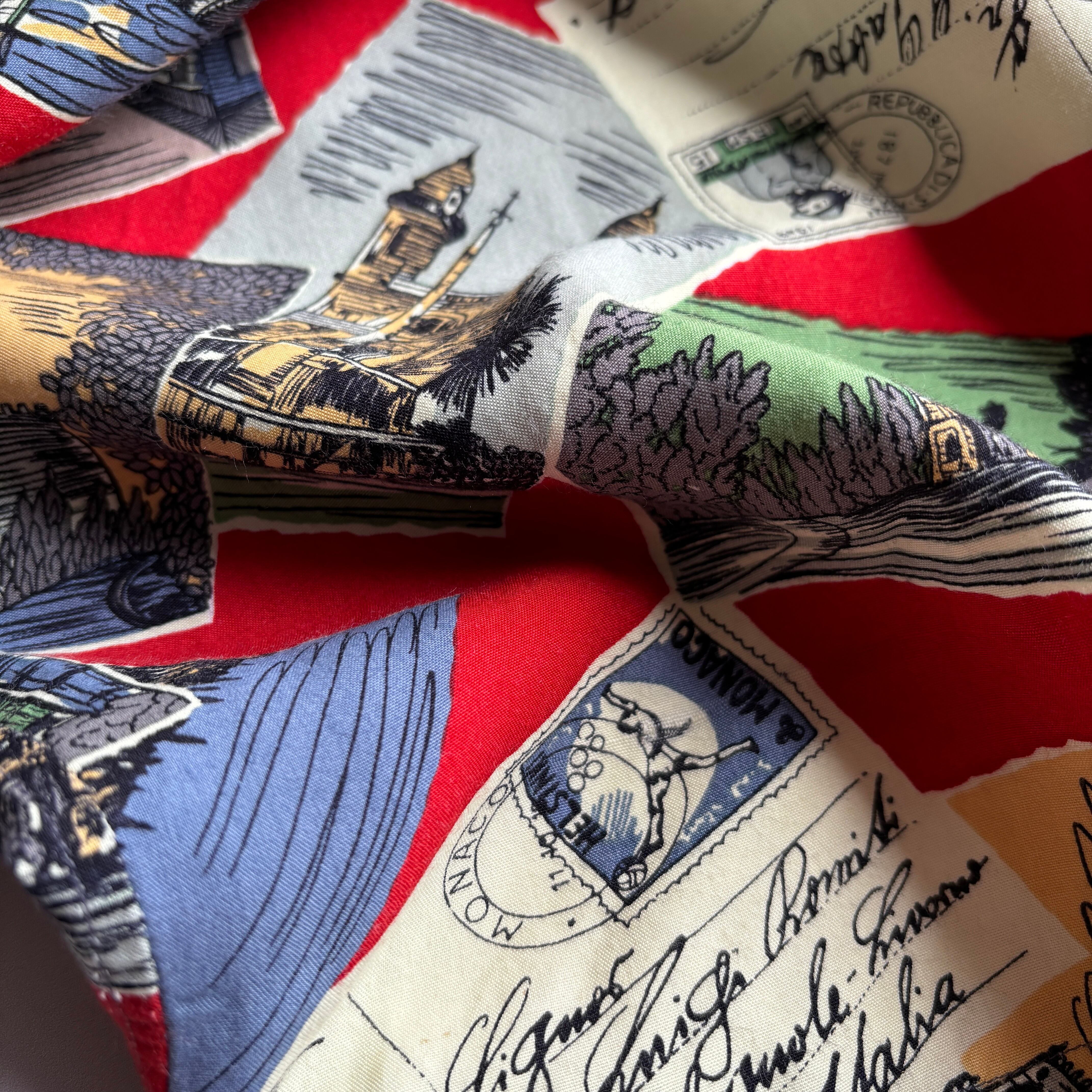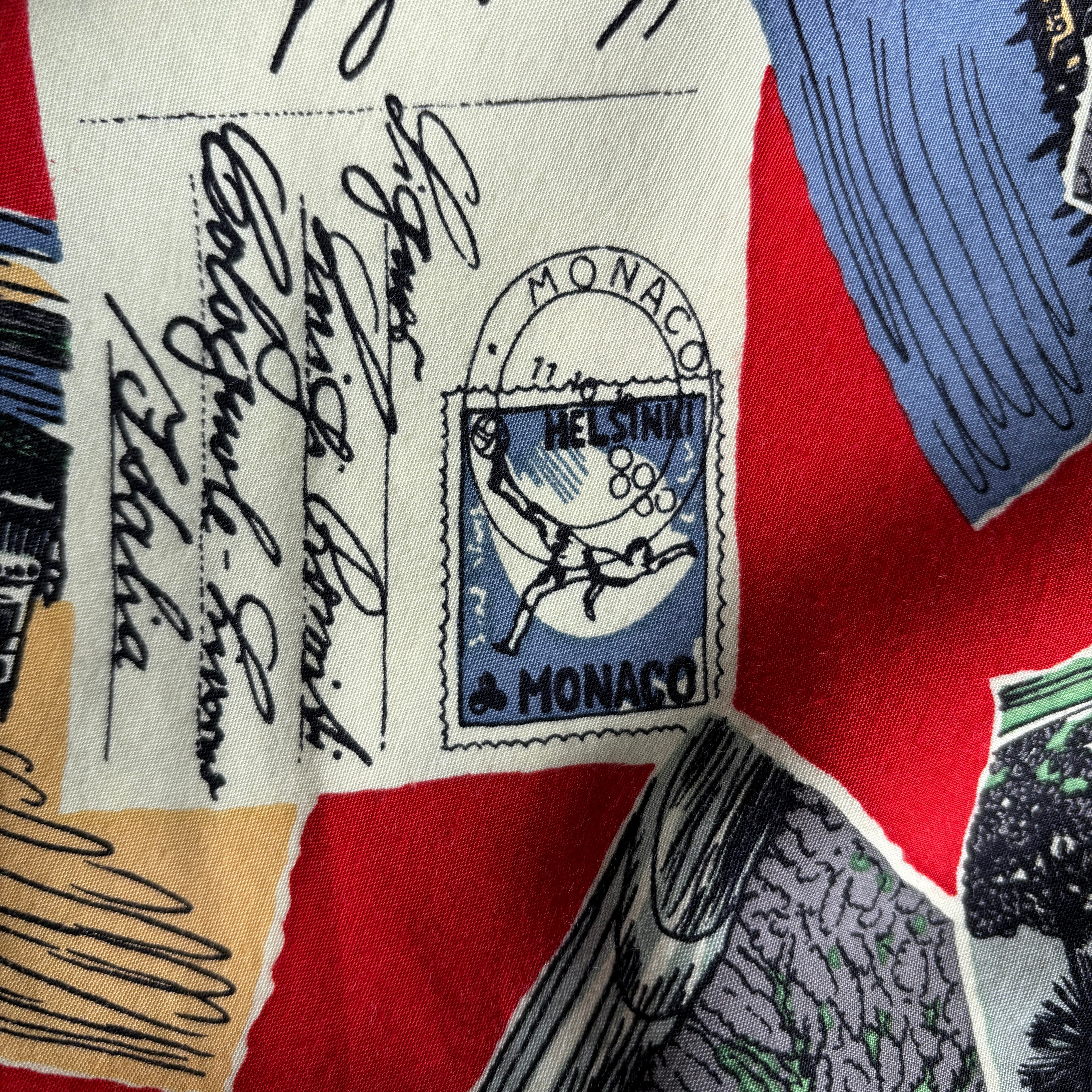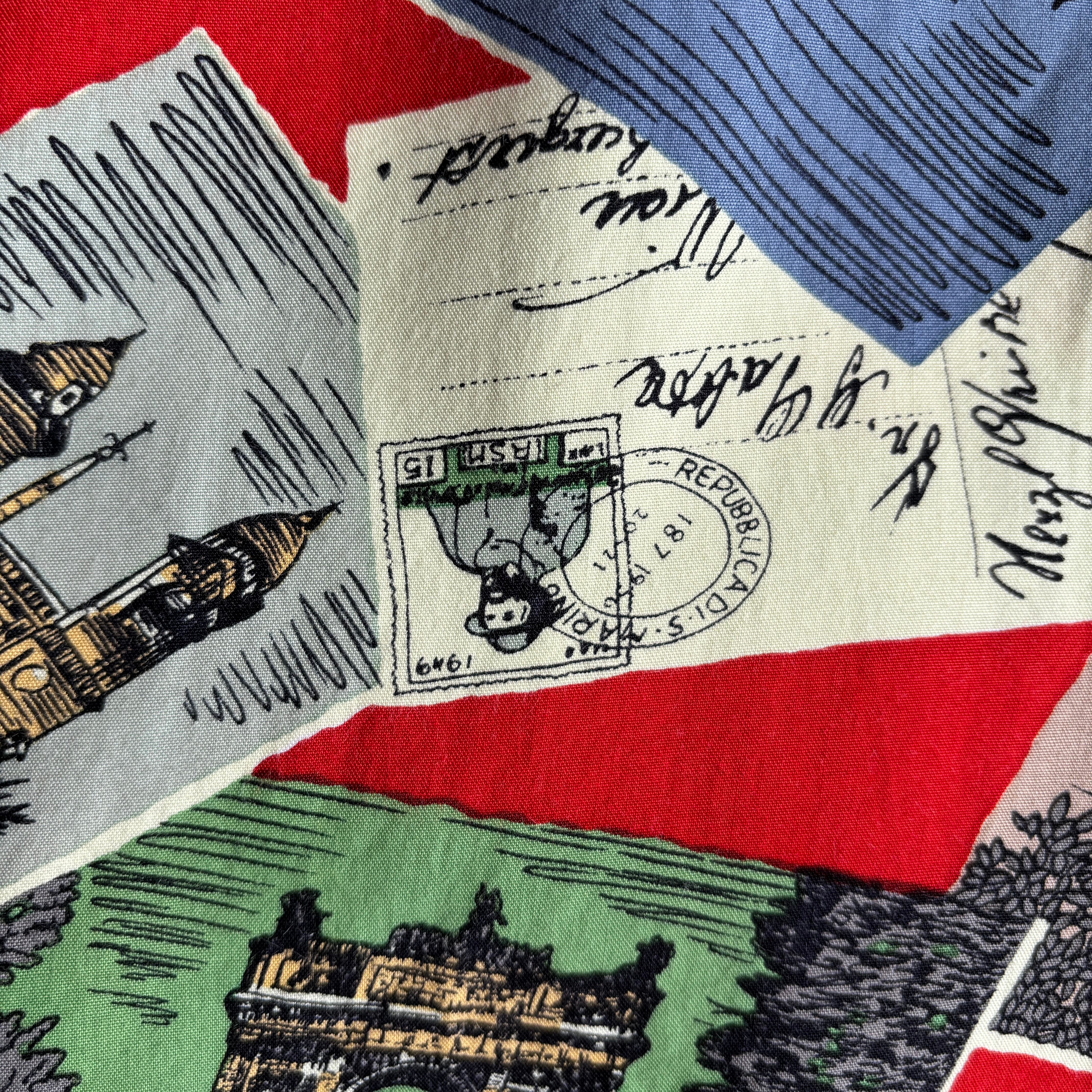 90s~ OLD BIGI 風景フォトポストカードイラスト柄 レーヨン 開襟 シャツ オープンカラー 半袖