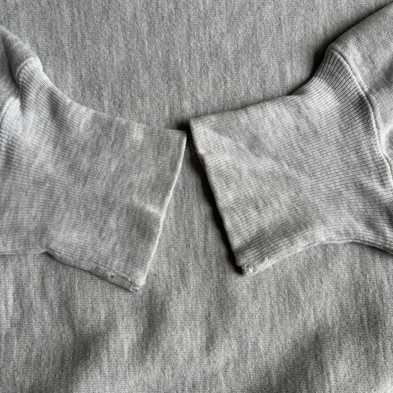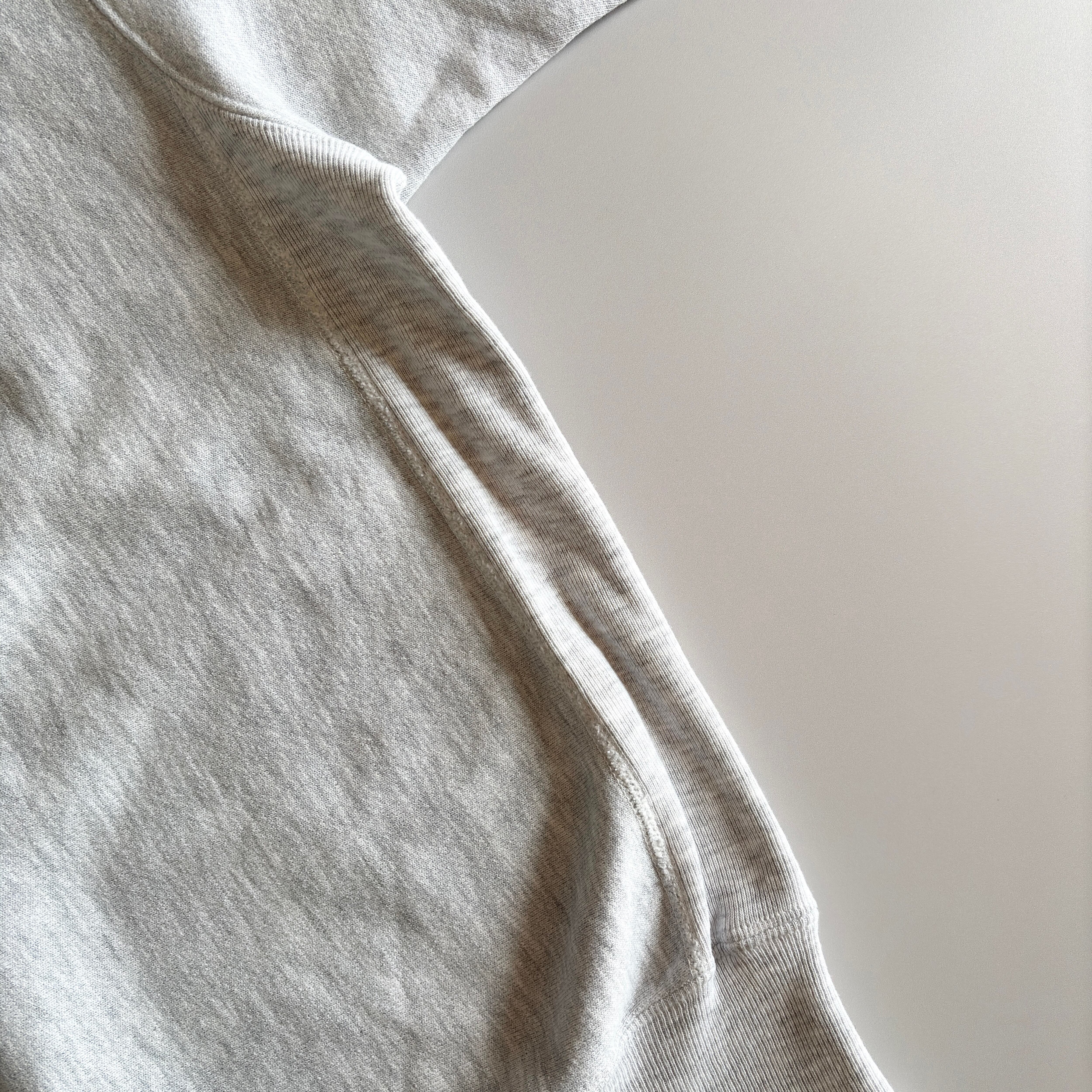 リバースウィーブならではの独特のガシッとしながらも柔らかさもある絶妙なバランスの生地感、サイドのリブ編みパネルに起因する独特のシルエットが雰囲気抜群です。