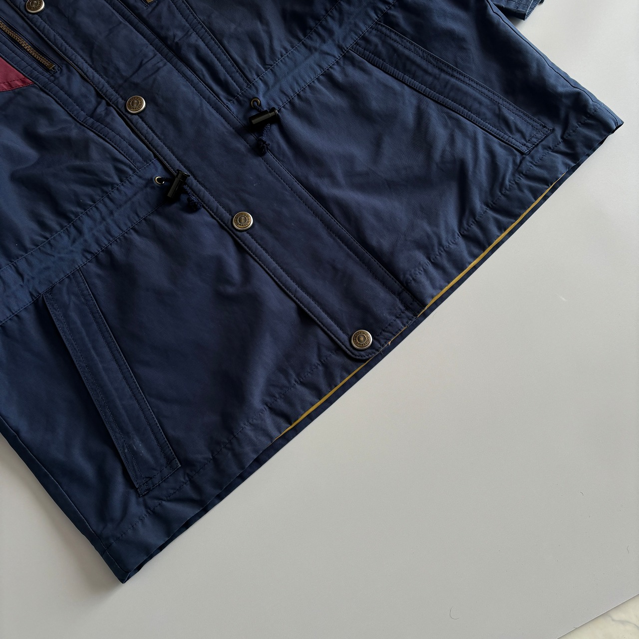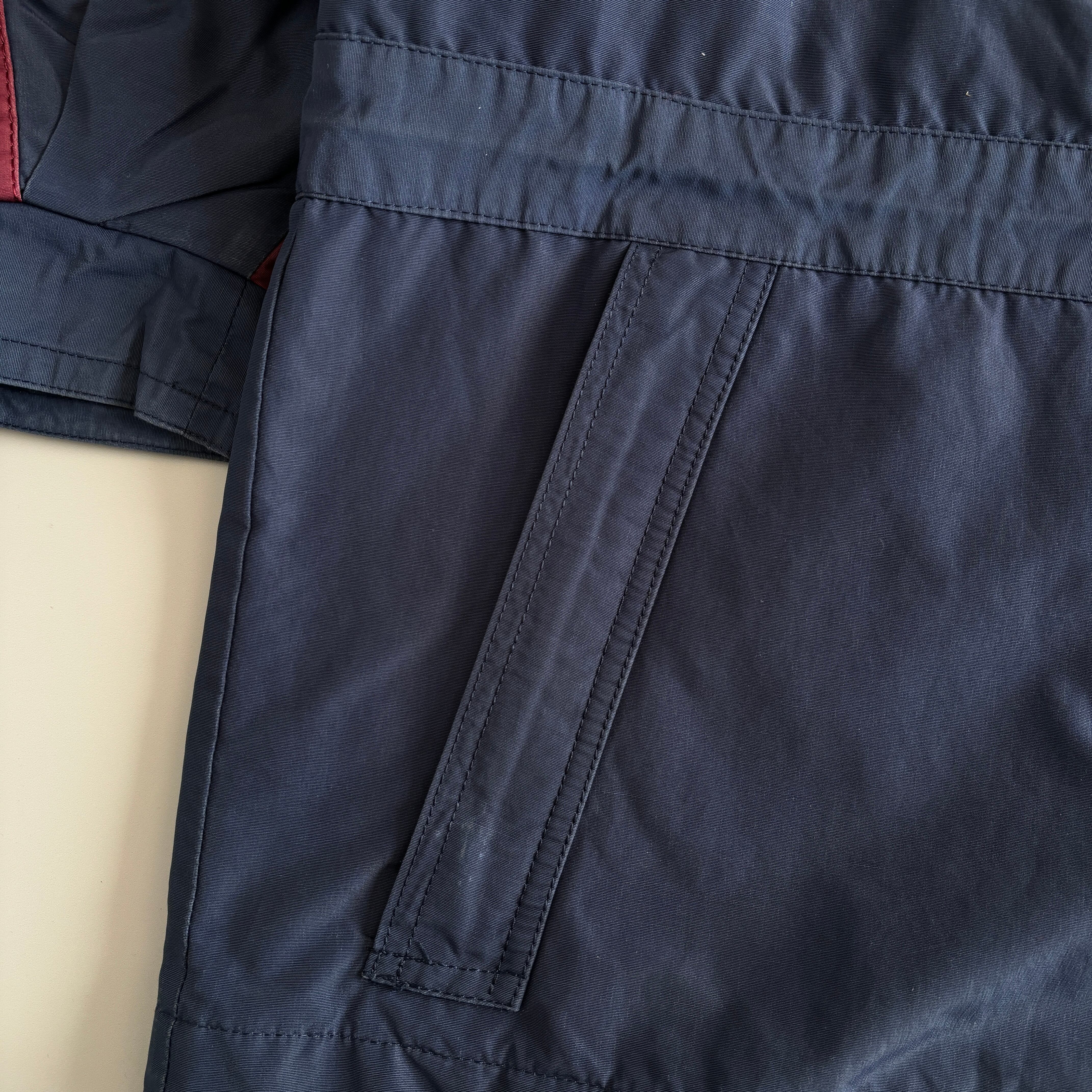フロント・裏地のジップが擦れる部分や、ドローコードが当たる部分のアタリや、袖先の若干のアタリ、ロゴ部分の若干の小傷、写真のようなステッチが途切れてる場所がございますが、比較的良い状態の古着です☺︎